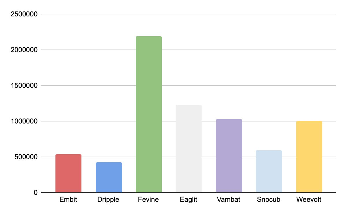 - Data released by developer tbradm on May 14, 2021 shows how many players picked each Beginner Loomian to that point. The order of most picked to least picked is as follows: Fevine, Eaglit, Vambat, Weevolt, Snocub, Embit, Dripple.[2]