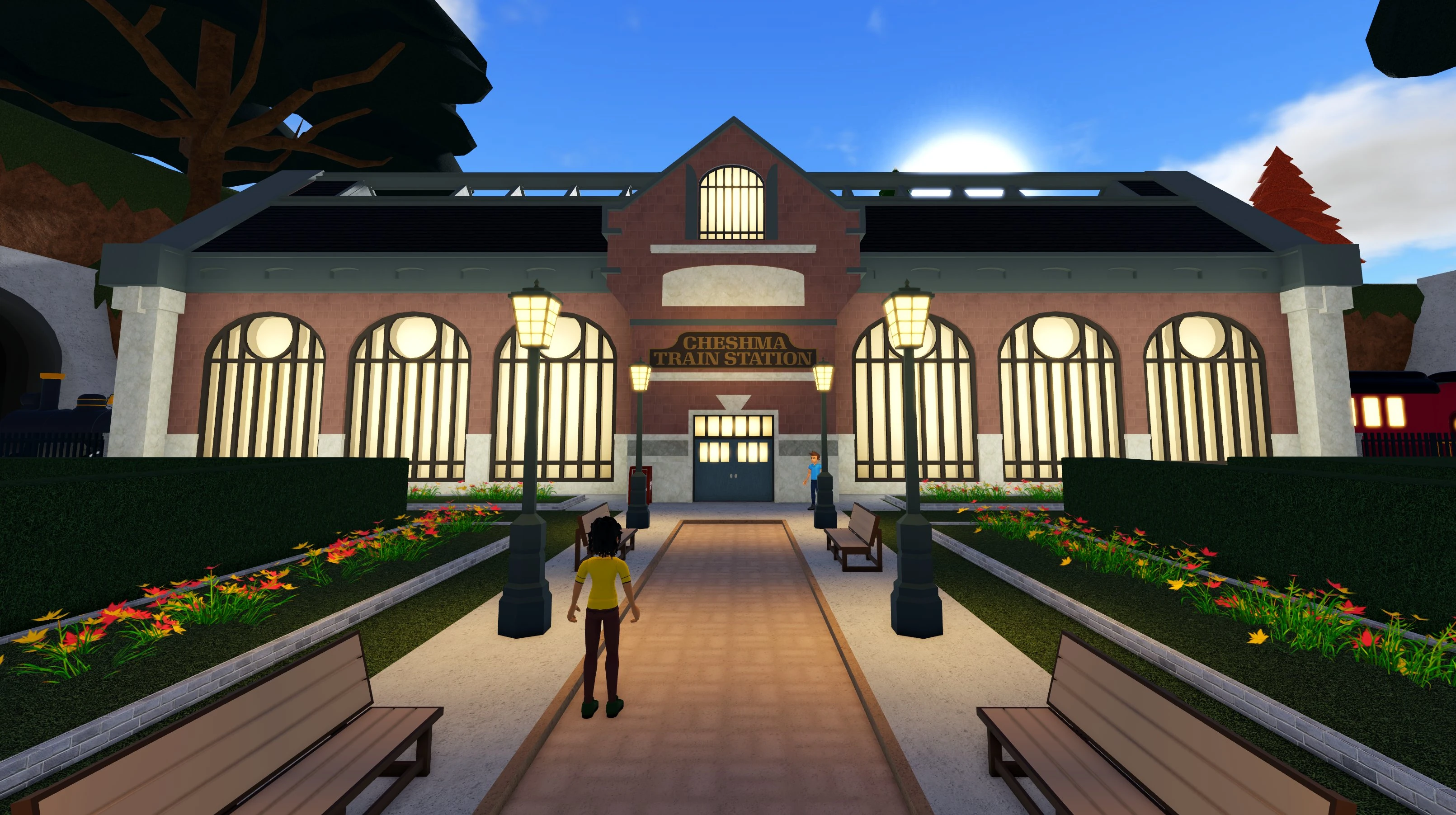 The Cheshma Train Station is located to the west of the town, near the Loomian Trainer Station. Inside, players can talk to Reggie, the project manager for the Roria's train station system, and complete his sidequest. After completing his sidequest, he can also put a train conductor hat onto a player's Llamba, Choochew, or Loomala.