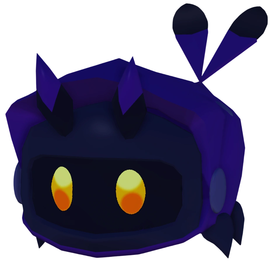 Grubby, a small Loomian, mirrors the appearance of a grub. This creature displays a yellow exterior with two short black antennae tipped in yellow. It features two tail-like appendages, yellow with black-brown tips, and six small brown, pointed legs. Its face is predominantly black, contrasted by two bright, round, yellow-orange eyes. Grubby's design likely draws inspiration from grub larvae of scarab beetles, which may also influence its name.
