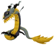 Zuelong resembles a Chinese Dragon, and has a long, slender body that is mostly yellow in color with its front portion being a darker shade and it has a white colored tail. Its four legs are black and thin. Zuelong’s face has whiskers and two lightning-bolt-shaped horns.